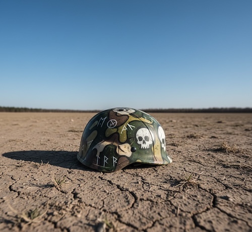 「ワークマン」で売ってるような作業用ヘルメットを塗装して、あえて「終末系装備」にする猛者もいます。