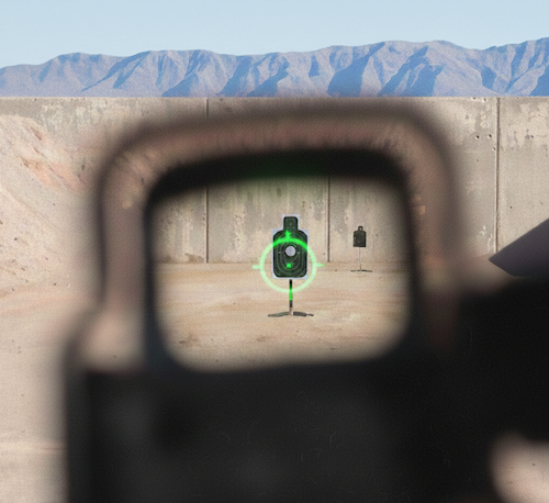 このようにホロサイトを使えば誰でも素早くかんたんに標的に弾を当てることができます。